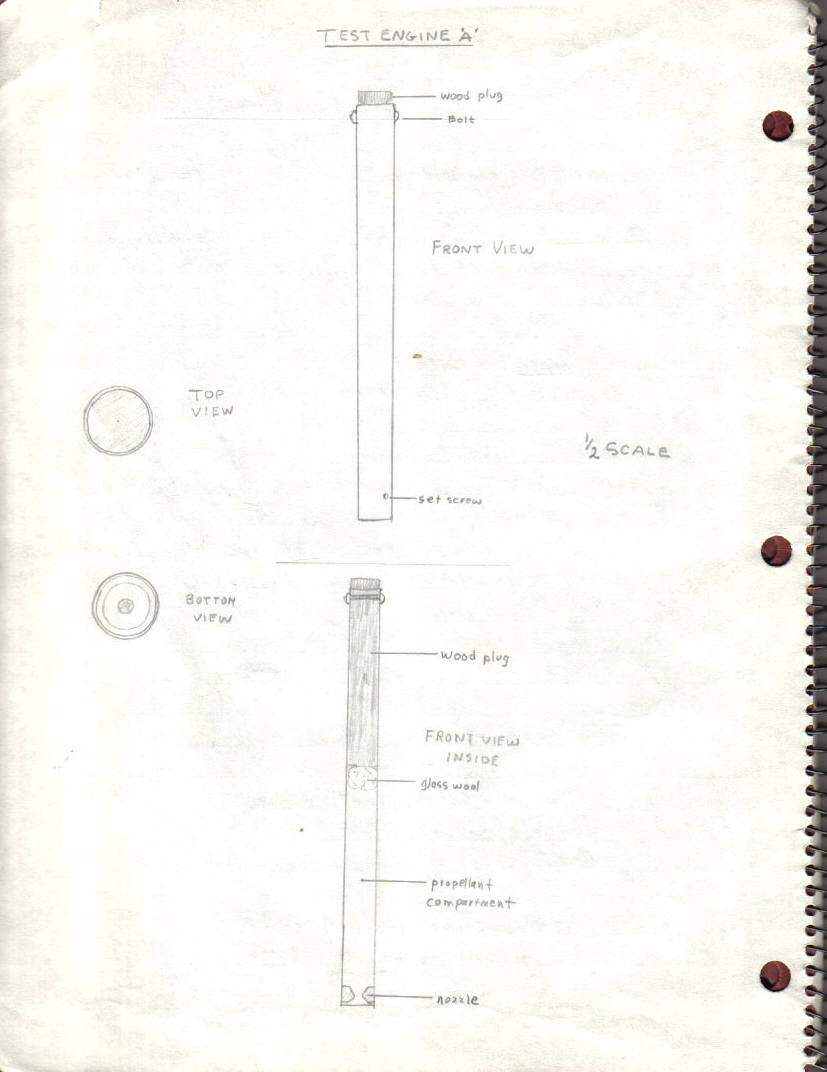 Not having the metalworking tools, or skills, at that age, to make a decent motor for testing my own concoction of zinc and sulphur, I pieced together what I felt what could pass for a rocket motor, and loaded the "propellant". As it turned out, the mixture barely burned, let alone burned with the vigour needed to produce useful thrust. Discouraged, I soon abandoned all further experimentation with this formulation.