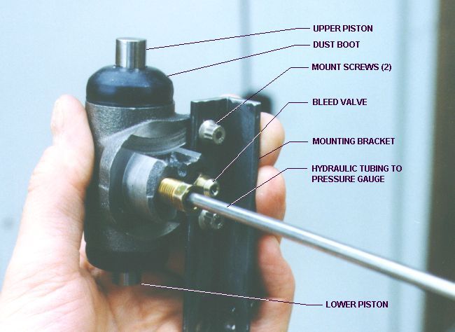 The hydraulic load cell described in this web page (Figure 1) is simple in design, and consists of a slightly modified automotive brake cylinder, also referred to as a wheel cylinder or slave cylinder, of the type used for drum brakes.