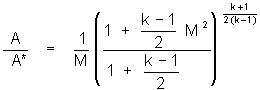 The ratio between the throat area, A*, and any downstream area in the nozzle, Ax, at which pressure Px prevails can be conveniently expressed as a function of the pressure ratio, Px /Po, and k. By noting that at the throat M is unity, and using equations 2, 3, 4, 7 & 12, leads to ![]()
