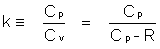 The local sonic velocity, a, and the Mach number, M, (defined as the ratio of the flow velocity to the local sonic velocity), is given by ![]() From equations 1,2 & 3, the relationship between the stagnation temperature (also referred to as total temperature) and Mach number may be written as ![]() It can be shown from the first and second laws of thermodynamics, for any isentropic process, that ![]() From equations 4 & 5, and from the equation of state for an ideal gas, ![]()