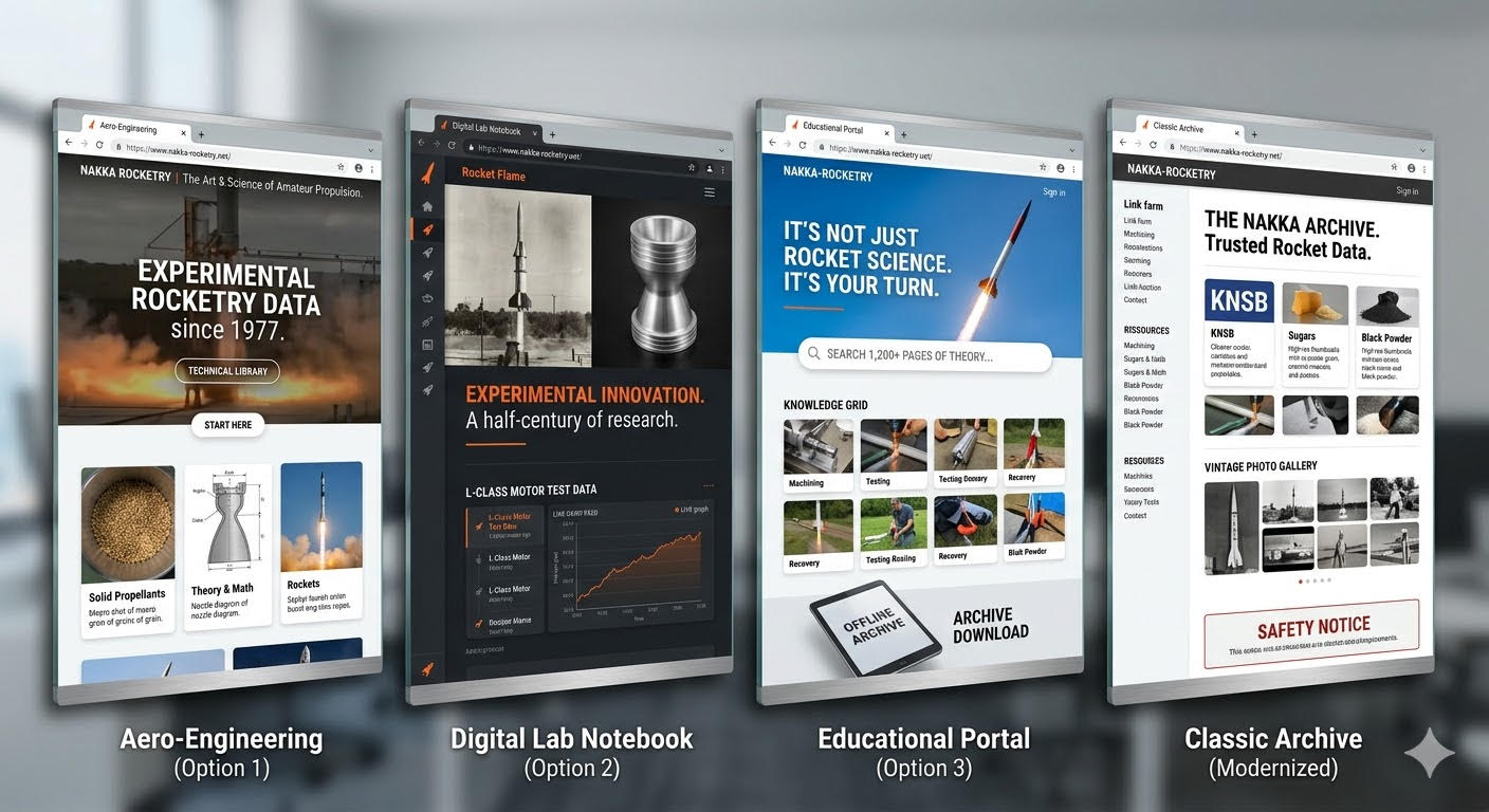 What is this Web Site all about?My goal in producing this web site is to share experiences, ideas and technical details of Amateur Experimental Rocketry with others around the world who have a similar interest. It is also my dream to help inspire a future generation of rocket engineers and scientists who will some day take us to Mars and beyond... I launched my very first amateur rocket in 1972. Since that time, so very long ago, I've built, tested and flown many rockets, powered by motors which I've developed. Over the duration of this time, I've kept detailed notes of all my work, carefully logged all the flights and other tests, and have taken countless photographs. In this web site, I am presenting at least a portion of my work. In addition to my own efforts, I am including some remarkable work done by others in pursuit of this exciting and challenging avocation. Amateur Experimental Rocketry ?Amateur Experimental Rocketry is, in my humble opinion, one of the most challenging, exciting and educational hobbies. Unlike Model Rocketry or High Power Rocketry, experimental rocketry is an activity whereby rockets are designed and constructed entirely from "scratch". Most components -- including motor and propellant-- are self-made. The goal of Amateur Experimental Rocketry (AER), often referred to as Amateur Rocketry, Experimental Rocketry or Research Rocketry, is to design, build, test and launch rockets. In this context, rocket may refer to the motor itself, or to a complete vehicle that consists of motor, fuselage (and stabilizing devices such as fins), nosecone, and payload. One of the greatest challenges is to develop and build such a motor, one that is safe to produce and operate, reliable, and one that provides predictable and consistent performance. A second big challenge is to develop a recovery system, such as parachute deployment, that operates with a high degree of reliability under the demanding conditions of launch followed by high speed or high altitude flight. Striving to achieve these goals (and many others) and to overcome the inevitable obstacles, is what makes this such a challenging (and at times frustrating) and educational pastime, and one that requires diversified skills combined with a good dose of ingenuity. The outcome of all this, more often than not, is that one learns to genuinely comprehend that which is colloquially known as Rocket Science. It might be said, then, that Model Rocketry and High Power Rocketry are best suited to those who wish to make and fly rockets, and Experimental Rocketry is perhaps best suited to those who rather wish to make rockets fly! Contents of this web site are presented for informational purposes only. Author of this web site cannot assume responsibility for the use readers make of the information presented herein or the devices resulting therefrom. Amateur Experimental Rocketry has many inherent hazards that must be fully understood before one can consider becoming actively involved. Safety must always be considered as top priority. Anything less is a disservice to all Amateur Experimental Rocketry enthusiasts. If you do not have first-rate common sense, or if you are willing to take shortcuts that compromise safety, then AER is not for you. Latest newsMarch 22, 2026 -- My website index page format and overall layout of the website has remained largely the same since originally published back in 1997. My good friend Albert ( a former collegue and fellow Stress Engineer) kindly provided guidance, upon my inquiring, on the power of AI and its capabilities regarding website creation. I currently know precious little about AI other than it is breathtaking in its capabilities. Being a keen and talented AI hobbyist, Albert provided some AI generated examples of what my index page could look like. Nakka-rocketry Admittedly, really cool looking, 21st century vs my current 20st century appearance. Now, I have been asking myself "is it imperative or wise to change my website to such an aesthetically appealing format?" I have always considered my website to be analogous to a textbook. Not pretty, but organized in a simple and logical way to present and find content. In the case of my website, a presentation of my rocketry knowledge, experiences, ideas and other information that can be of interest and of use to fellow amateur rocket engineers around the globe. For the present time, I will ponder this matter and give it careful consideration. I would certainly be interested in feedback from those who use my website. Would such a revamping be value-added in some way that is not apparent to me, the website creator, as opposed to the website visitor? On a somewhat different note, now that I am retired, I plan to have more time to work on updating/expanding my website...completing my "Rocket Design" pages, updating my static testing page with more ideas, presenting my latest experimental work on APCP propellants, and presenting results of my extensive testing of various thermal liner materials and the related topic of using such materials for producing robust propellant casting tubes. August 1, 2025-- Recently I test-fired my KNSB-powered M-Class Muon rocket motor for the third time. Although the first two firings were successful, on both occasions a quirky computer-related glitch prevented data collection. For this third test, improvements were made to eliminate such problems, and both the test-firing and the collection of thrust and chamber pressure data were successful. I was most pleased with the thrust/pressure curves, which matched design predictions nicely. Next year I plan to fire this motor for the fourth time, utilizing KNDX propellant. Eventually I will document both the Muon motor design and the test results in a future web page.