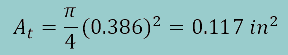 The nozzle has a throat diameter of 0.386 inches. The cross-sectional area is therefore
