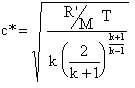 where R' is the universal gas constant, M is the effective molecular weight of the combustion products, T is the combustion temperature, and k is the ratio of specific heats of the combustion gas mixture. As may be seen from the expression, c* is dependant solely upon the combustion process. From the above expression, KN-Sucrose propellant is found to have an ideal c* = 919 metre/sec (3014 fps).