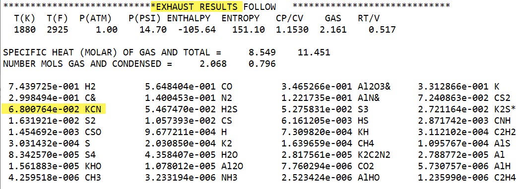 - Burnrate coefficient (a): 0.57 (mm/s/MPan ?)