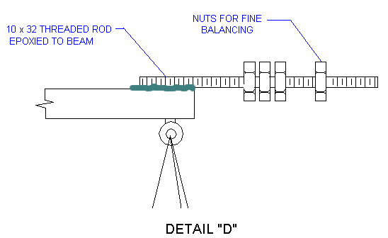 At one end of the beam, a length of threaded rod is epoxied. This is to facilitate a number of nuts, used for fine balancing of the beam (aligning to the zero mark).
