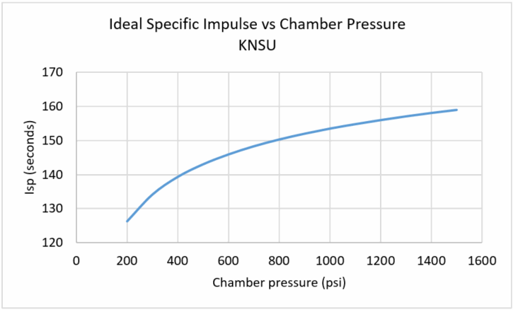 For KNSU propellant, with an oxidizer-fuel (O/F) ratio of 65/35, the theoretical combustion equation is as follows: